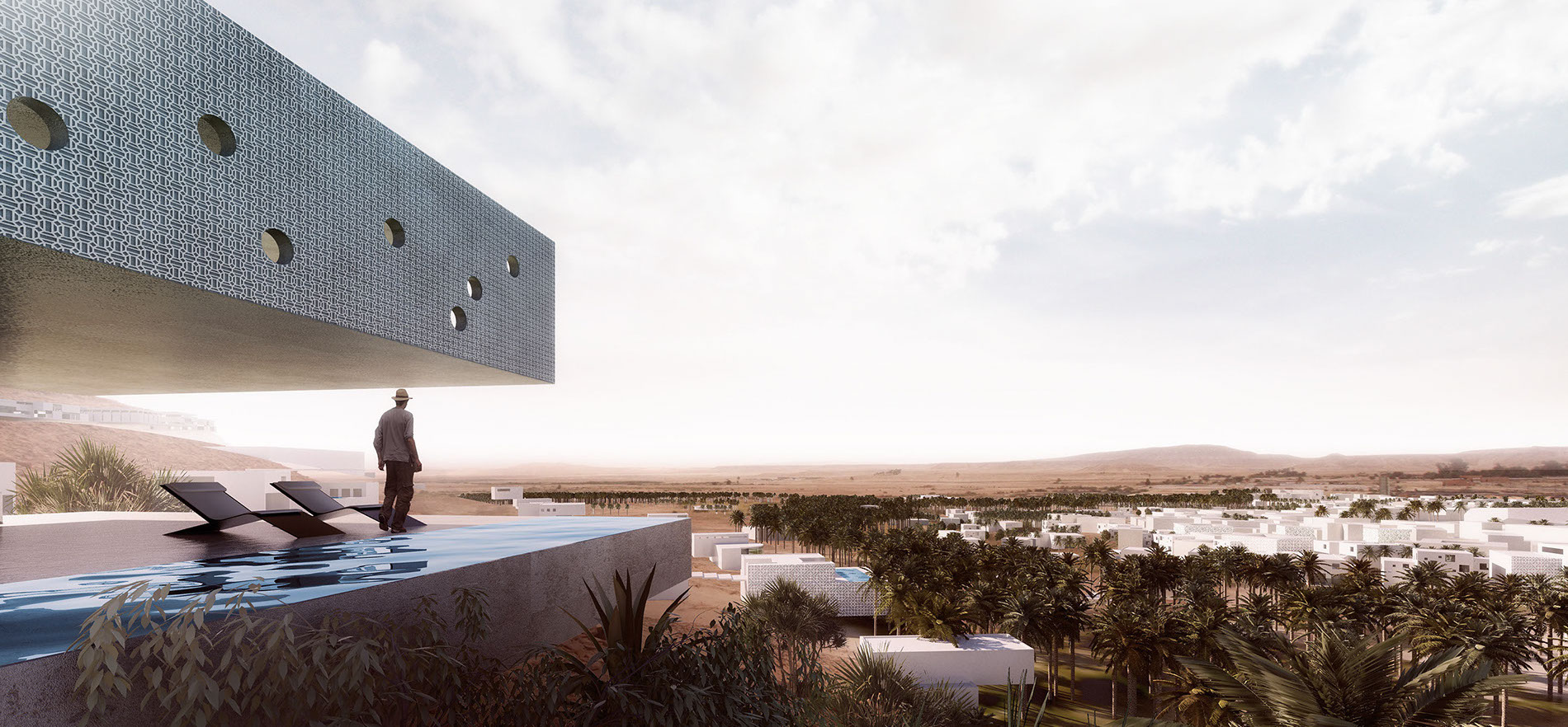 “The Rift” residential tower is a part of the Dubiotech Biotechnology and Research Park Development in Dubai. The 22-story tower, when completed, would house 400 residents in 170 units. All units are designed to maximize the views of the park for those on rear side and the city skyline for those on the front side of the building. The parking structure would be three stories with an amenity deck on the podium level featuring spacious pools and cabanas that afford a view of the city.